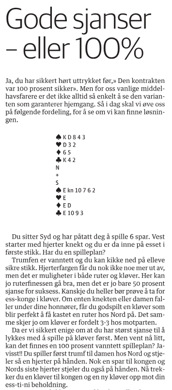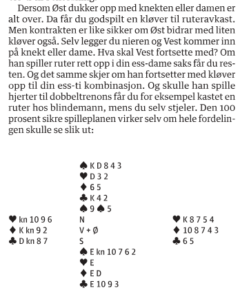 Vi presenterer også en av Åsmund Sandkjernan sine bridgespalter denne gangen. Denne sto på trykk i Arbeidets Rett den 13. mars i fjor, og med tanke på at det spilles lag til helga, burde denne leses.