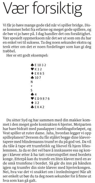 Selv om Arbeidets Rett ikke publiserer sin bridgespalte lenger, har vi vært så heldige å få publisere flere av Åsmund Sandkjernans gullkorn fra arkivet på våre sider.