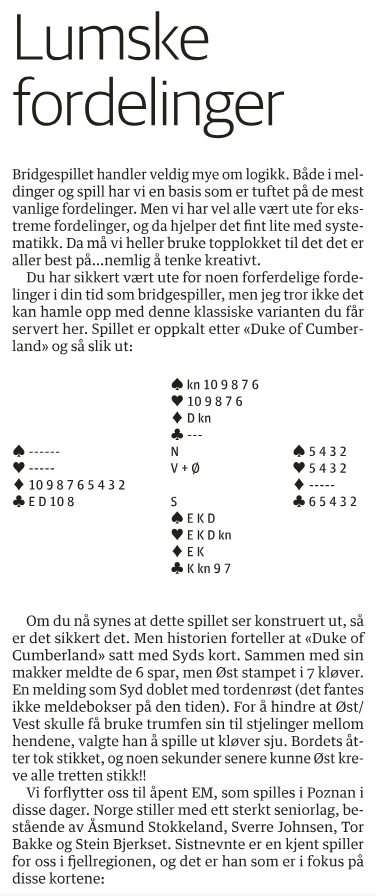 Her følger to spill som Åsmund Sandkjernan hadde på trykk i Arbeidets Rett 3. juli 2025, og som vi bridgespillere kjenner oss godt igjen i.